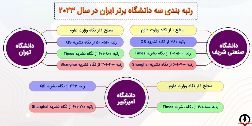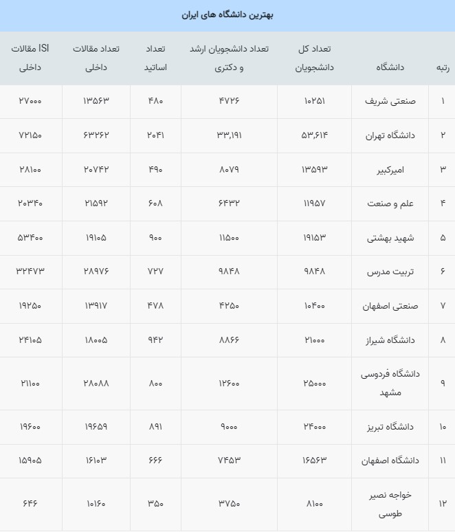 - دانشگاه اصفهان، صنعتی شیراز و خواجه نصیر (این سه دانشگاه تقریبا در یک رده قرار دارند)