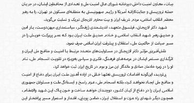 اینجانب با قلبی آکنده از اندوه، این ضایعه بزرگ را به محضر مقام معظم رهبری (مدظلهالعالی)، خاندان مکرم خرازی، همکاران و جامعه علمی و دیپلماتیک کشور تسلیت عرض نموده و از درگاه خداوند متعال برای آن شهید سعید، رحمت واسعه، علوّ درجات و همنشینی با اولیای الهی را مسئلت مینمایم.